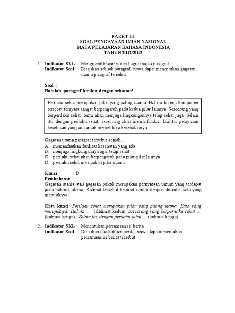 Berikut kumpulan contoh soal mata pelajaran bahasa indonesia untuk jenjang smp/mts. Soal ini sudah dilengkapi dengan jawabannya yang bisa . + contoh soal latihan un dan unbk bahasa indonesia smk paket b. Simak dengan baik soal dan kunci jawaban latihan un dan unbk pelajaran bahasa indonesia untuk smk bagian pilihan ganda. Di bawah ini adalah kumpulan soal beserta pembahasan dari un bahasa indonesia dari .